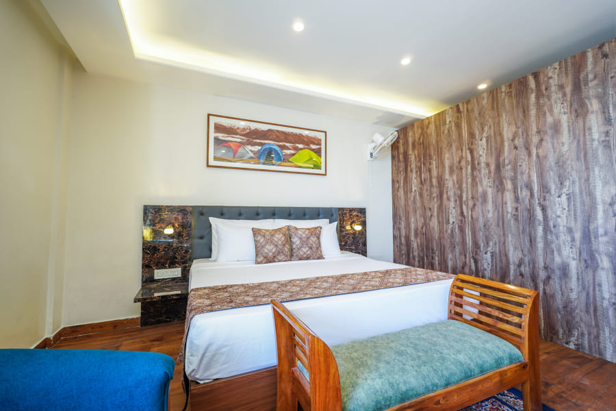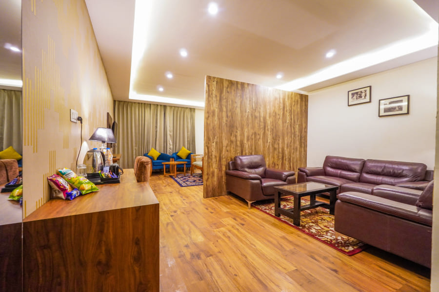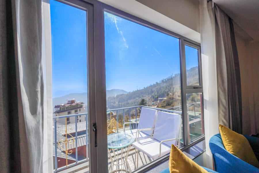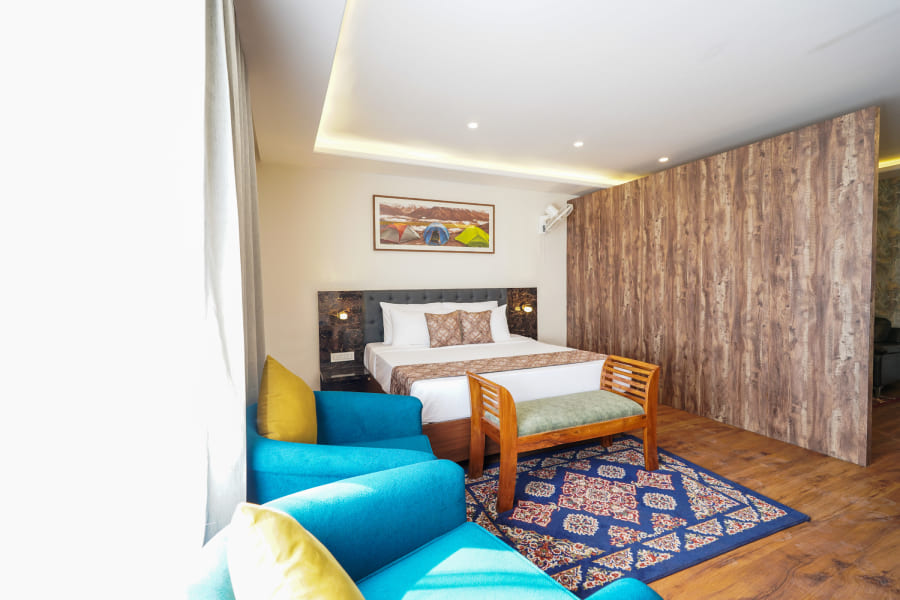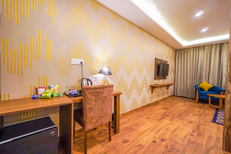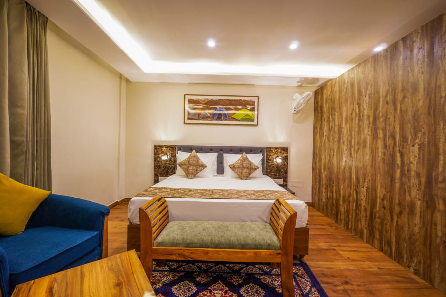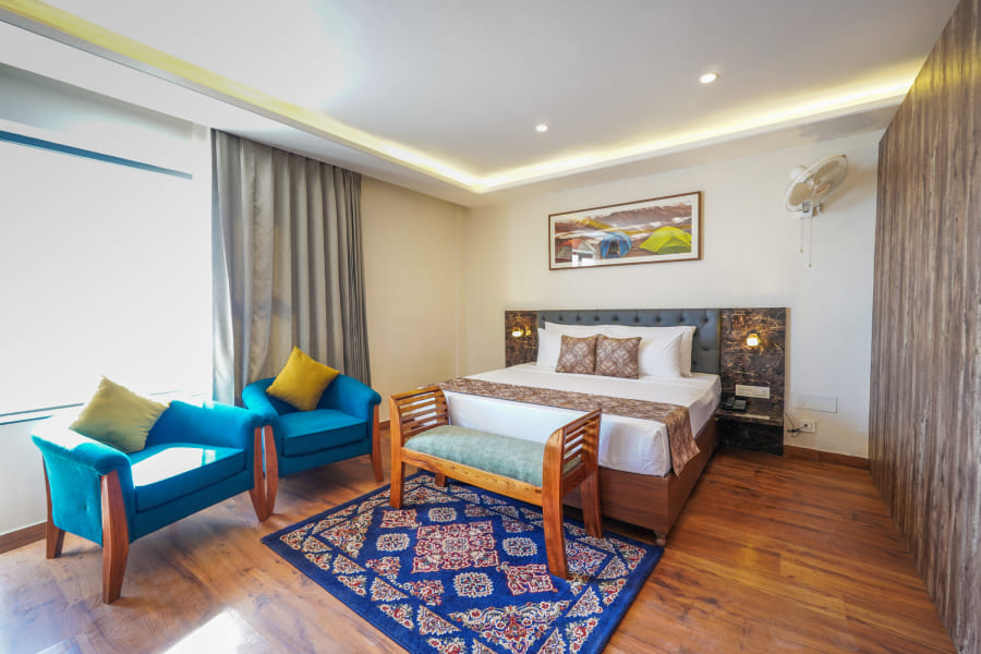 The Executive Suite Room at Carom The Castle Resort, Fagu, Shimla, redefines luxury with its spacious layout, elegant design, and panoramic views of the majestic Himalayas. Thoughtfully crafted for ultimate comfort, the suite features a separate living area, tasteful wooden interiors, and large windows that invite the beauty of nature indoors. The serene ambiance makes it an ideal choice for guests seeking privacy and relaxation in a refined mountain setting.